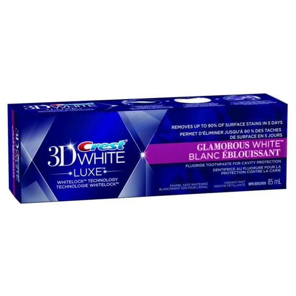 Зубная паста Crest 3D White Luxe Glamorous White была признана продуктом 2012 года в США. Данная зубная паста является последней разработкой в серии отбеливающих зубных паст Crest 3D White. Сразу несколько технологий были применены при создании Crest 3D White Luxe Glamorous White, среди которых формула блеска, которые: