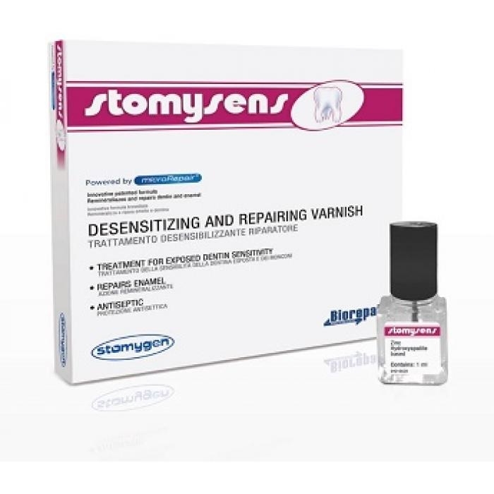 Лак STOMYSENS рекомендован для лечения поврежденной эмали и открытого дентина, он оказывает десенсибилизирующее действие, а также используется для защиты здоровых и живых оснований зубов, на которые планируется установить постоянные протезы. STOMYSENS - лечебное средство для снижения чувствительности, восстанавливающее эмаль и дентин, защищает от образования налёта на уровне пародонта благодаря запатентованному активному комплексу microRepair®